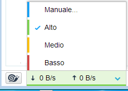 Nel caso non voleste interrompere il download ma vi servisse la banda per altro è possibile utilizzare la modalità Lumaca dove sia download ed upload verranno limitati a soli 2 Kb/s.