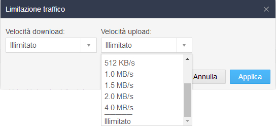 C’è anche una modalità MANUALE in cui è possibile personalizzare le limitazioni in upload e download separatamente.